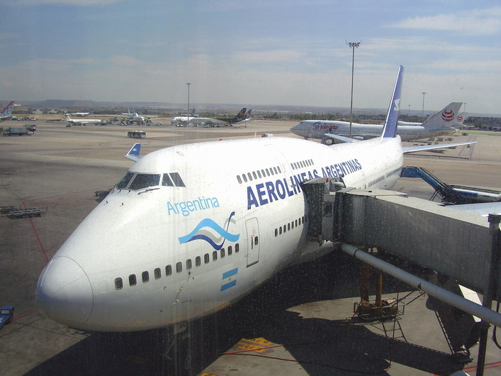 enorme avião das Aerolineas Argentinas que nos carregou até
