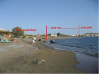 fotos, vocês podem ver que a zona livre é quase a metade da praia