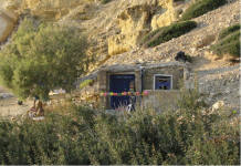 nudistas. Ele tem uma casa de pedra e terraço na sombra e vende bebidas.